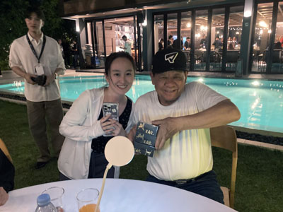 タイのホテル王のビアさんも出展されてました。 開催中には取材もあり、 ビアさんには通訳をしていただきました。